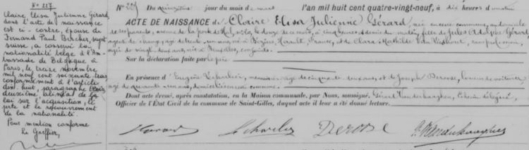 1889 Acte de naissance (Saint-Gilles, Belgique)