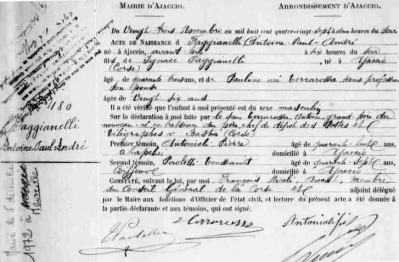 1887 Acte de naissance (Ajaccio, France)