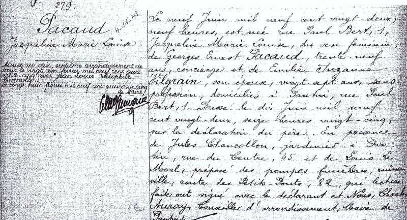 1922 Acte de naissance (Pantin, France)