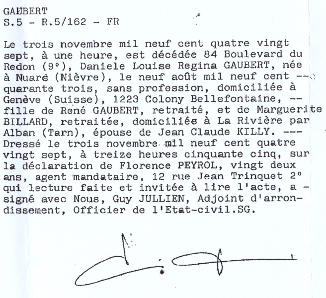 1987 Acte de décès (Marseille, France)