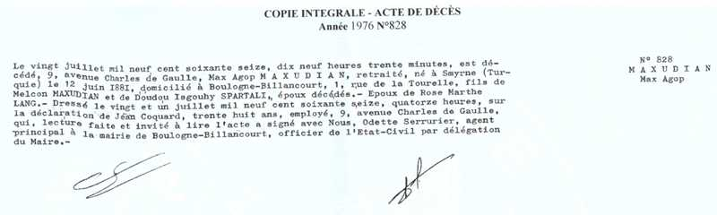 1976 Acte de décès (Boulogne-Billancourt, France)