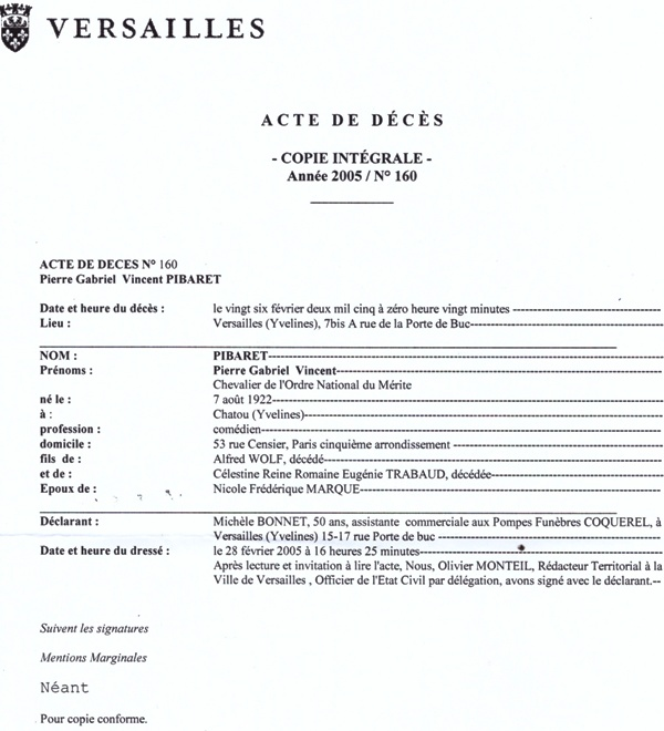 2005 Acte de décès (Versailles, France)