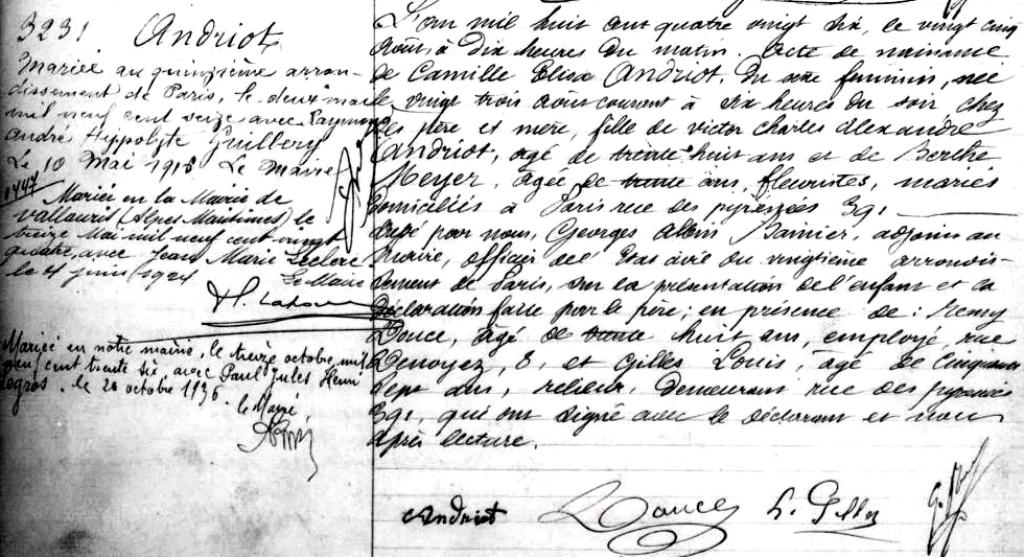 1886 Acte de naissance (Paris 20ème, France)