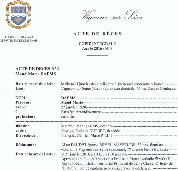 2016 Acte de décès (Vigneux-sur-Seine, France)