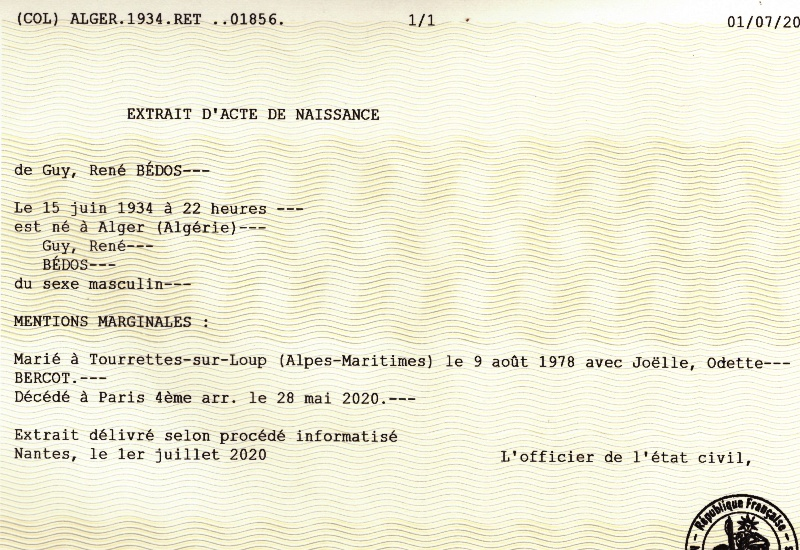 1934 Acte de naissance (Alger, Algérie Française)