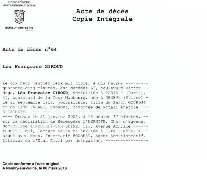 2003 Acte de décès (Neuilly-sur-Seine, France)
