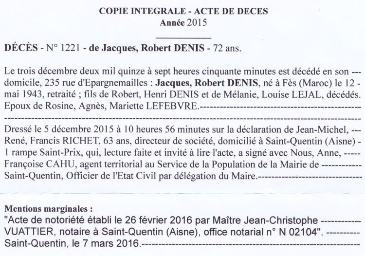 2015 Acte de décès (Saint-Quentin, France)