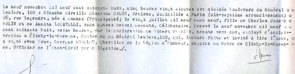 1968 Acte de décès (Clichy-la-Garenne, France)