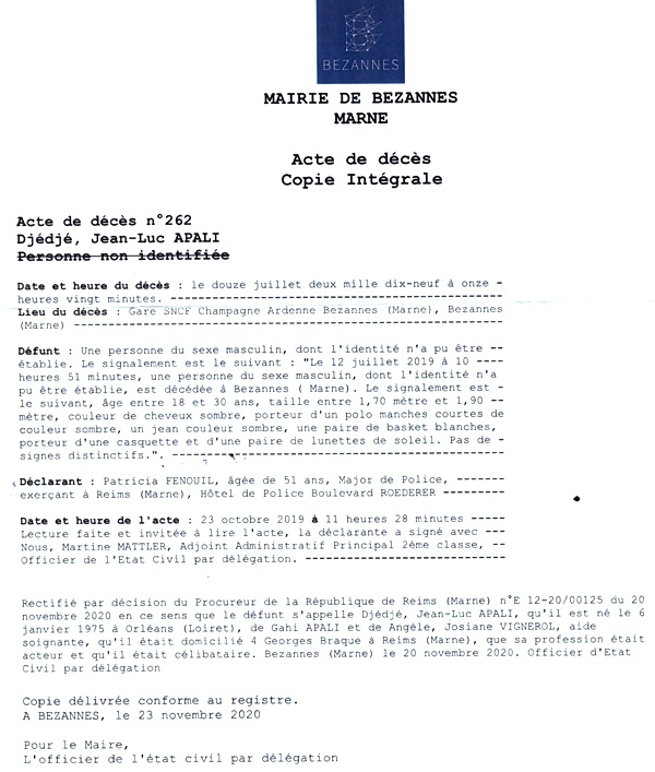2019 Acte de décès (Bezannes, France)