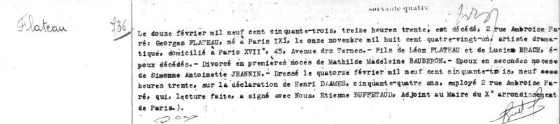 1953 Acte de décès (Paris 10ème, France)