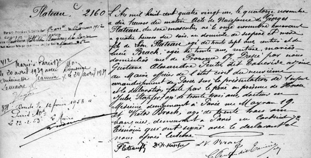 1881 Acte de naissance (Paris 9ème, France)