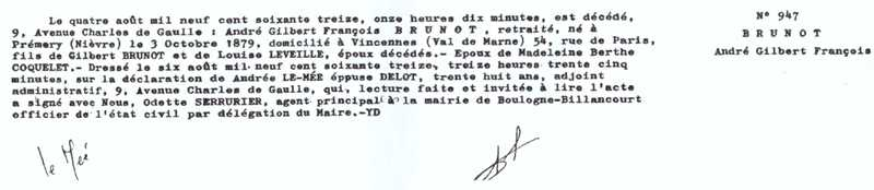 1973 Acte de décès (Boulogne-Billancourt, France)