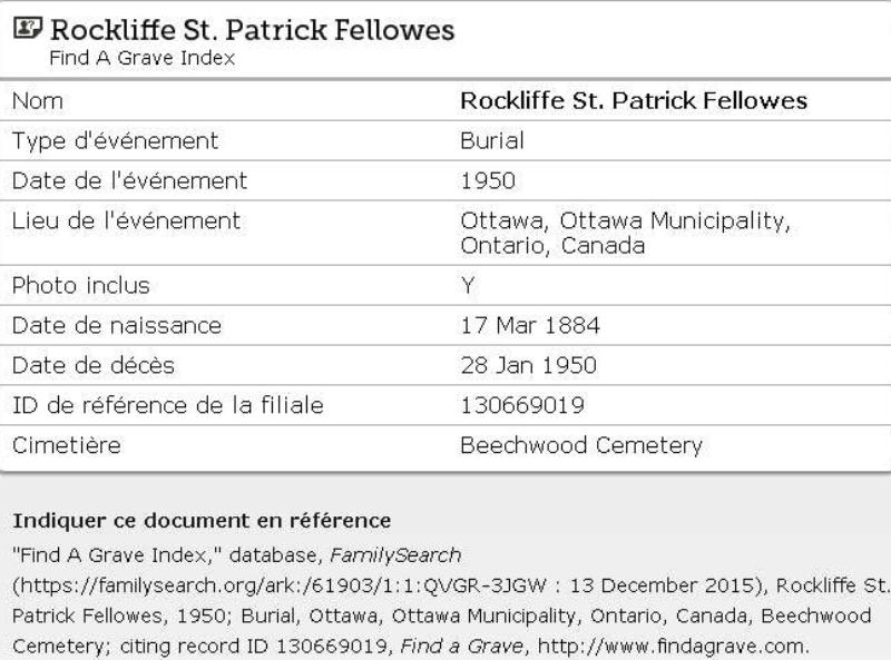 1884 Retranscription de l’acte de décès (Ottawa, Ontario, Canada)