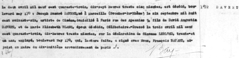 1943 Acte de décès (Paris 18ème, France)
