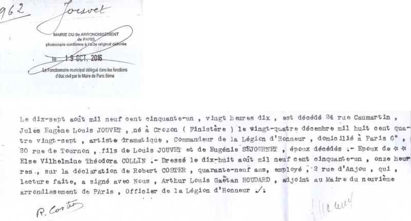 1951 Acte de décès (Paris 9ème, France)