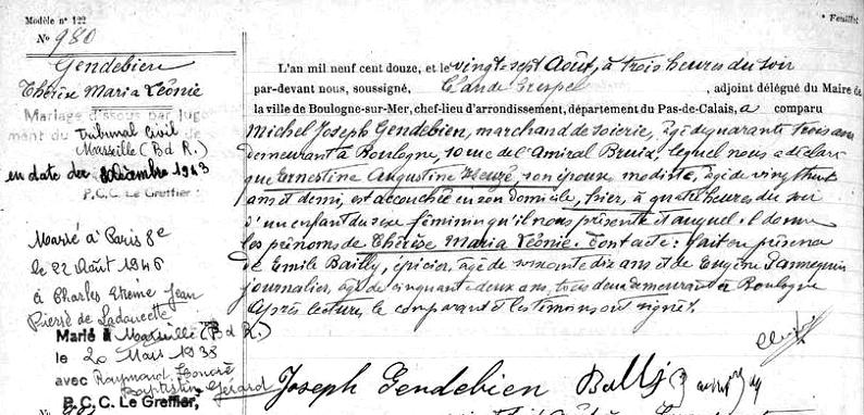 1912 Acte de naissance (Boulogne-sur-Mer, France)