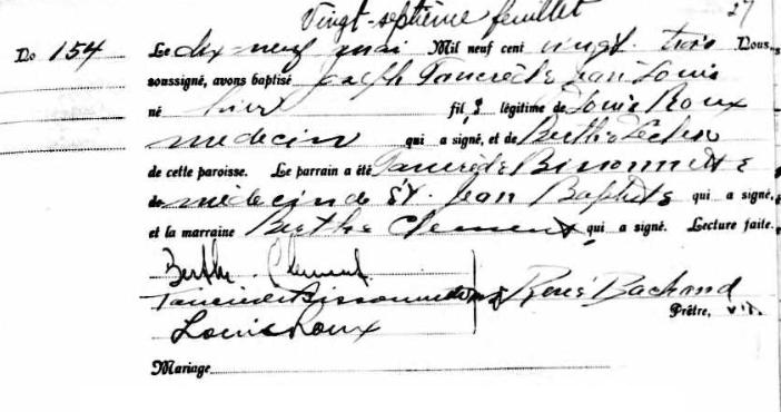 1923 Acte de baptême (Montréal, Québec, Canada)