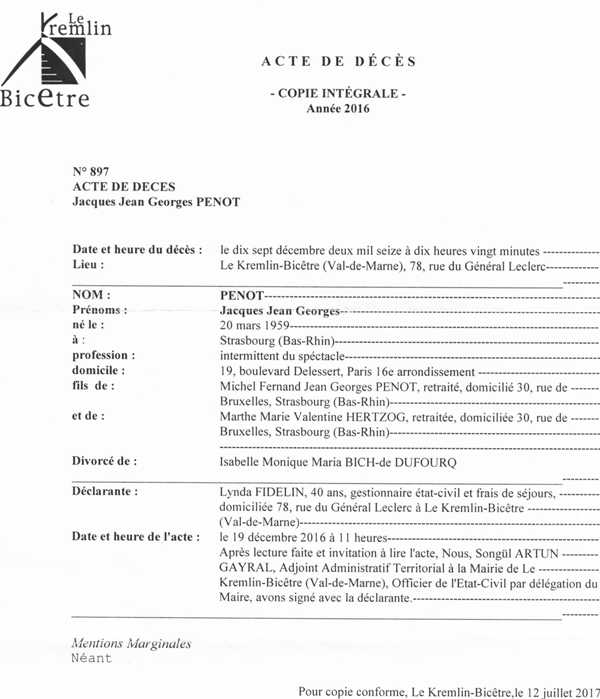 2016 Acte de décès (Kremlin-Bicêtre, France)