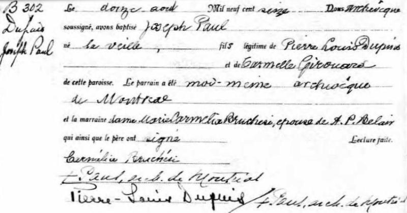 1916 Acte de baptême (Montréal, Québec, Canada)