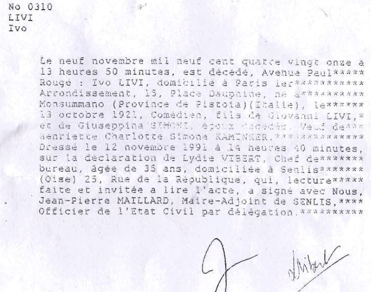 1991 Acte de décès (Senlis, France)