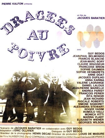 ![]() 1963 Dragées au poivre – de Jacques Baratier avec Guy Bedos, Jean-Paul Belmondo & Jean-Pierre Marielle | ![]() 1963 Le jour le plus court (il giorno più corto) de Sergio Corbucci avec Walter Pidgeon & Eduardo De Filippo | ![]() 1963 Zorba le Grec (Zorba the greek) de Michael Cacoyannis avec Alan Bates (Scènes coupées au montage) | ![]() 1964 Compartiment tueurs – de Costa-Gavras avec Michel Piccoli, Catherine Allégret & Jean-Louis Trintignant | ||