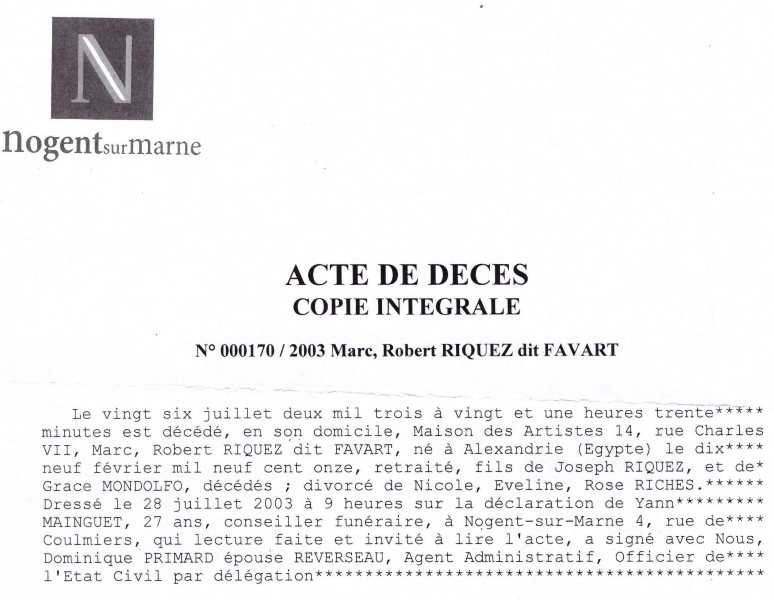 ![]() 1973 La race des seigneurs – de Pierre Granier-Deferre avec Alain Delon | ![]() 2003 Acte de décès (Nogent-sur-Marne, France) | ||||