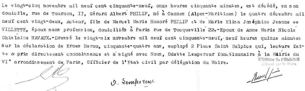 1959 Acte de décès (Paris 6ème, France)