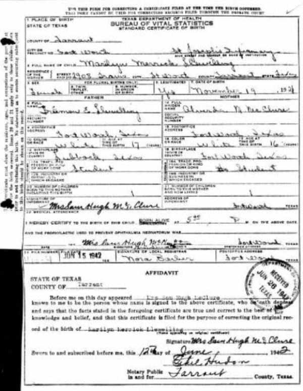 1921 Acte de naissance (Fort Worth, Texas, USA)