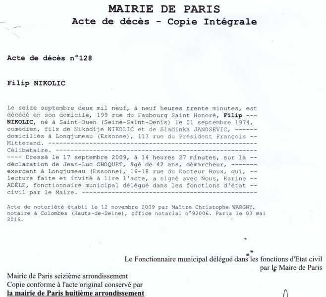 2009 Acte de décès (Paris 9ème, France)