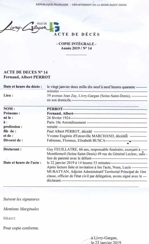 2019 Acte de décès (Livry-Gargan, France)