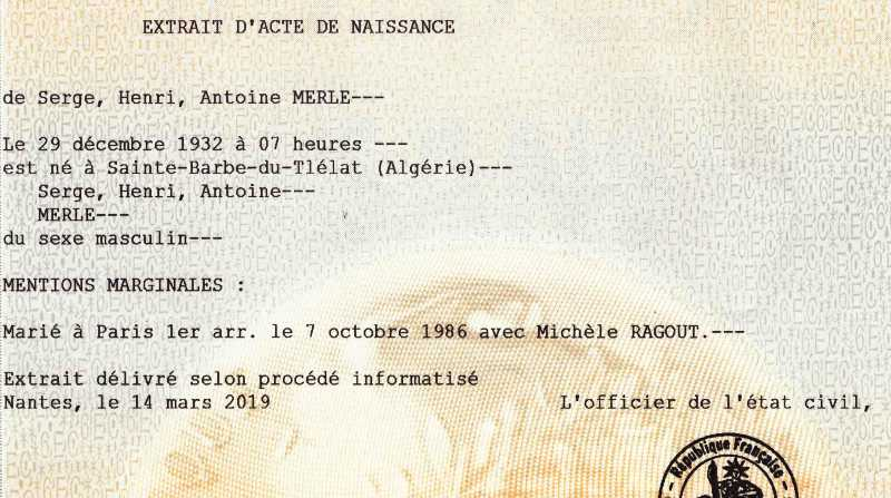 1932 Acte de naissance (Sainte-Barbe-du-Tlelat, Algérie française)