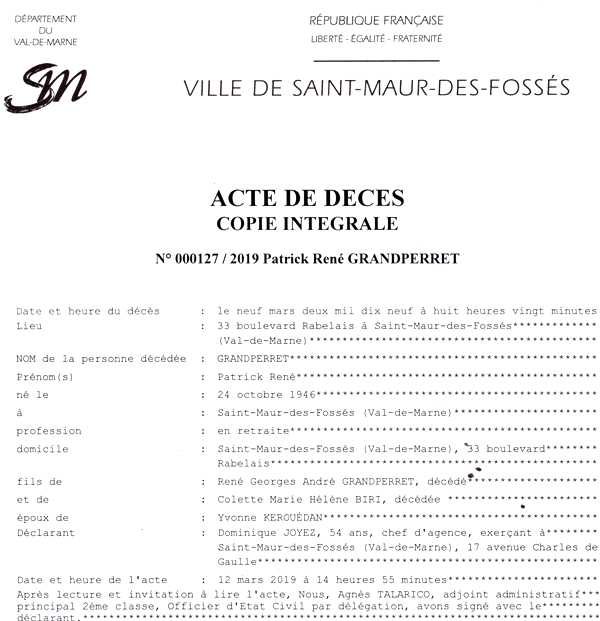 2019 Acte de décès (Saint-Maur-des-Fossés, France)