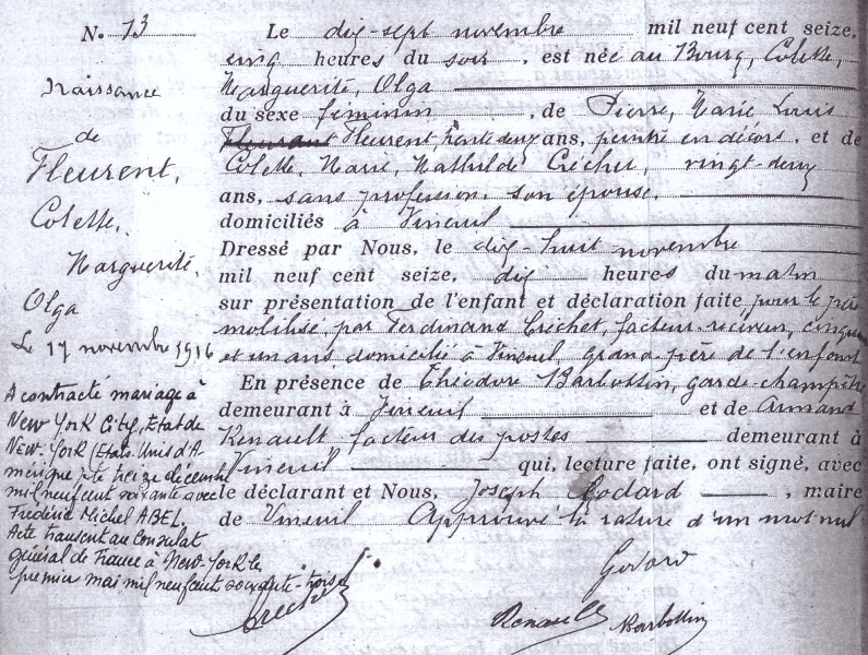 1916 Acte de naissance (Vineuil, France)