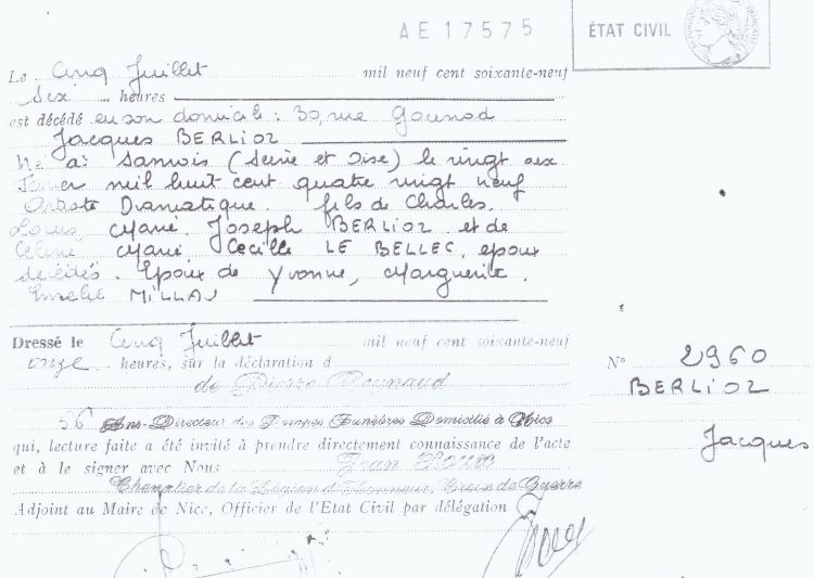 1969 Acte de décès (Nice, France)
