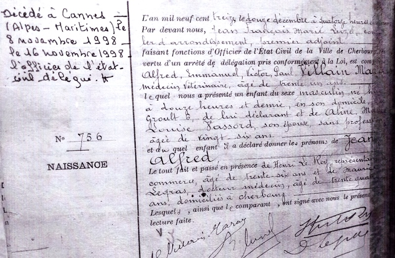 1913 Acte de naissance (Cherbourg, France)