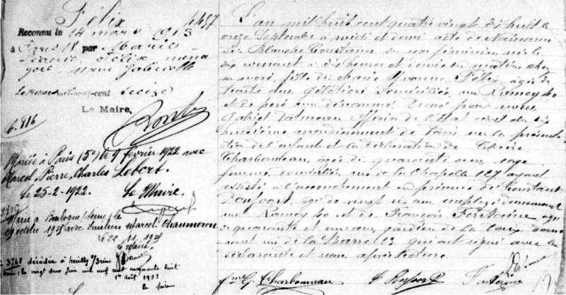 1922 Acte de mariage (Paris, France)