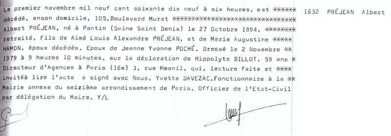 1979 Acte de décès (Paris 16ème, France)