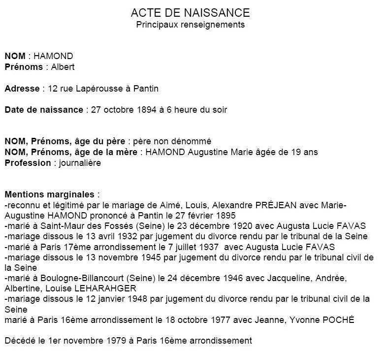 1894 Retranscription de l’acte de naissance (Pantin, France)