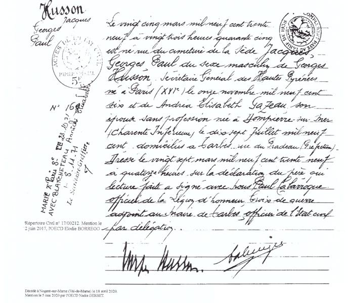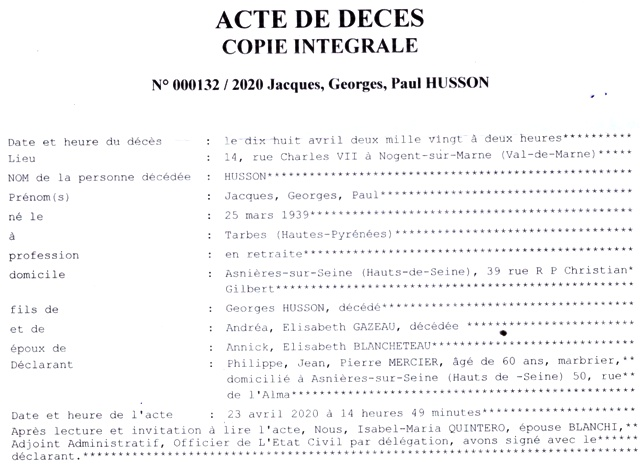 2020 Acte de décès (Nogent-sur-Marne, France)