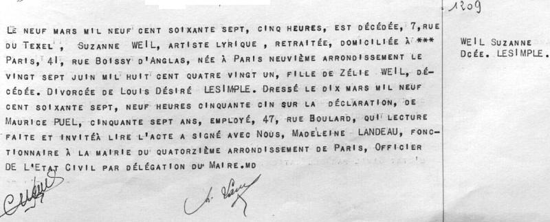 1967 Acte de décès (Paris 14ème, France)