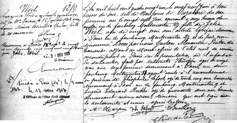 1881 Acte de naissance (Paris 9ème, France)