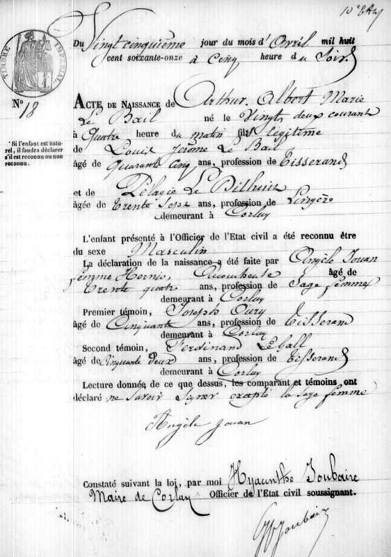 1871 Acte de naissance (Corlay, France)