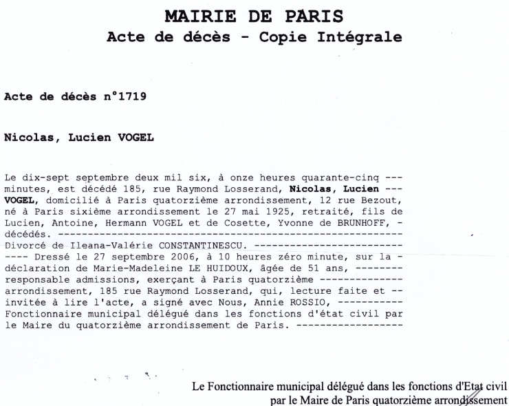 2006 Acte de décès (Paris 14ème, France)