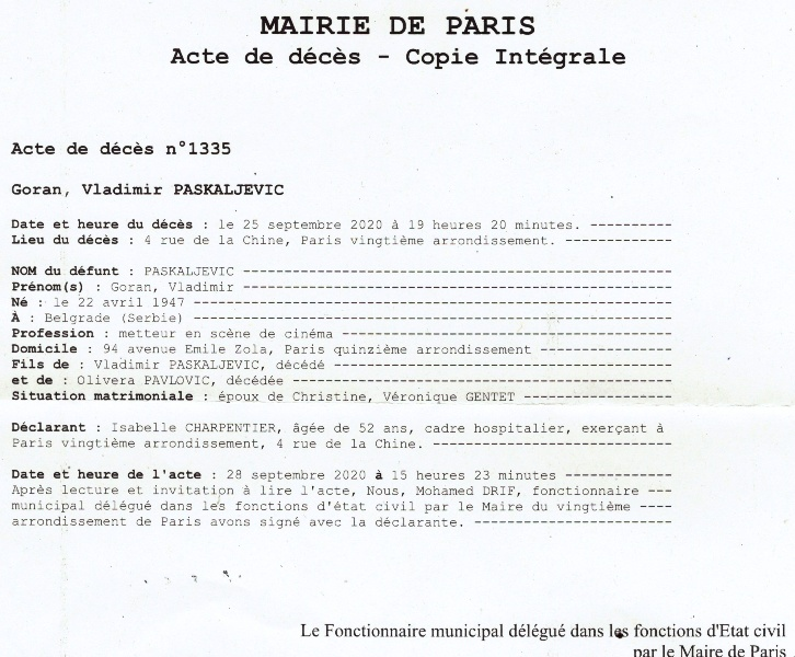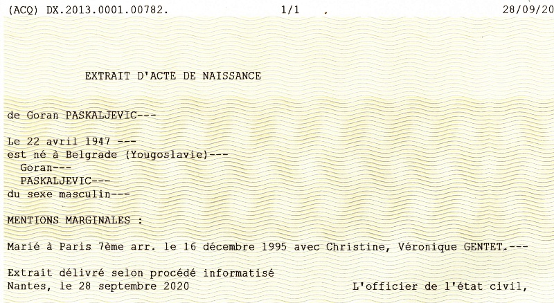 1947 Acte de naissance (Belgrade, Yougoslavie)