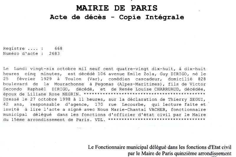 1998 Acte de décès (Paris 15ème, France)