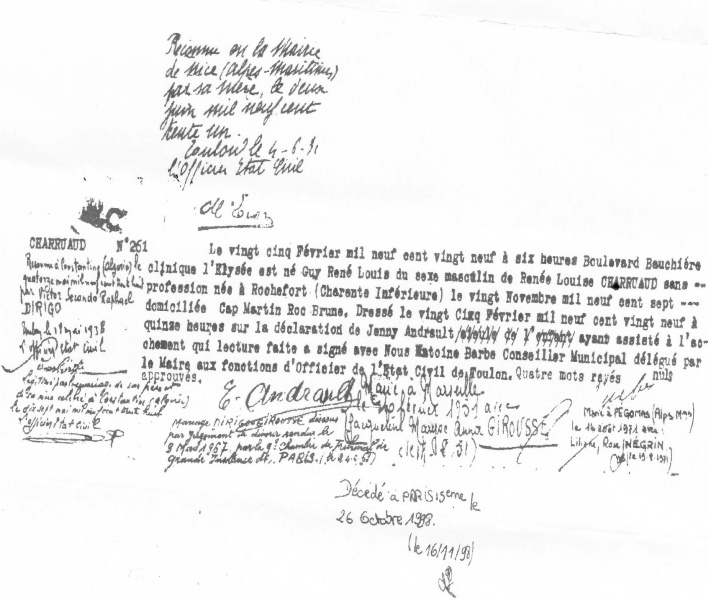 1929 Acte de naissance (Toulon, France)