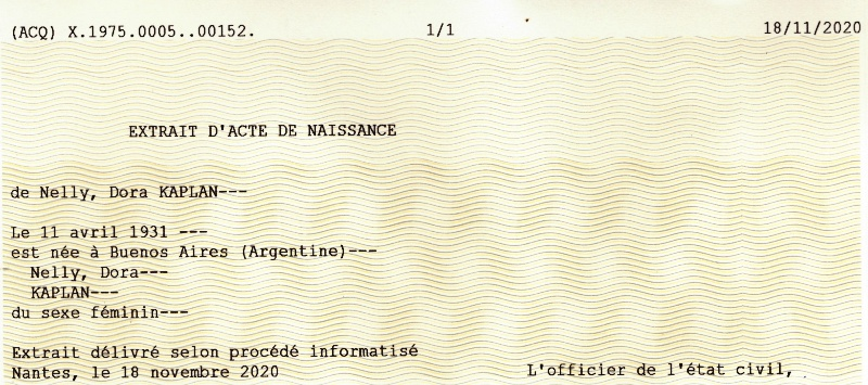 1931 Acte de naissance (Buenos Aires, Argentine)