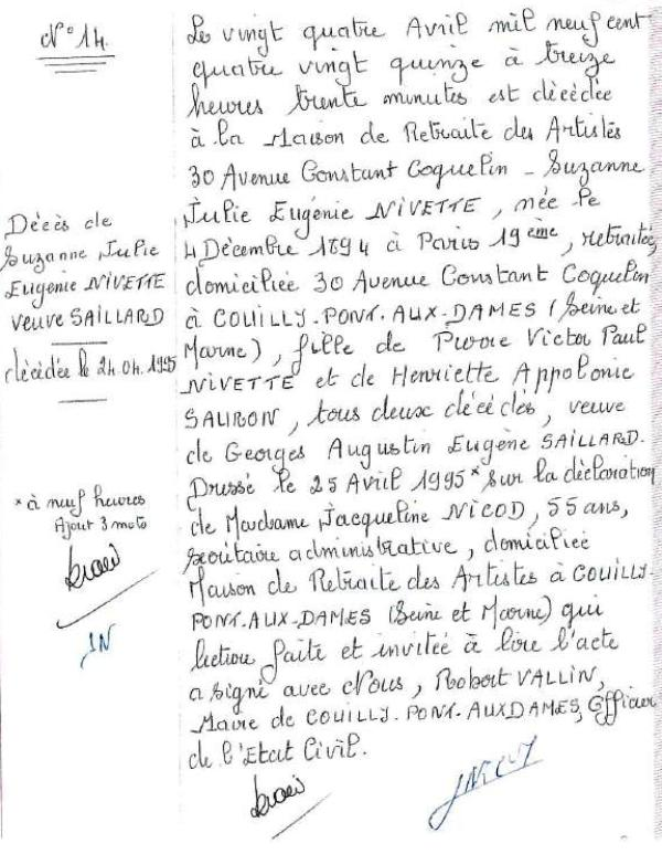 1995 Acte de décès (Couilly-Pont-aux-Dames, France)