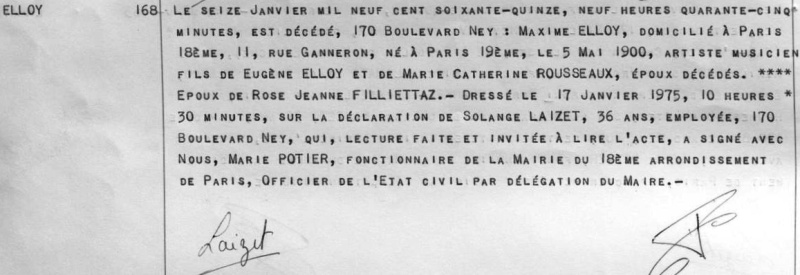 1975 Acte de décès(Paris 18ème, France)