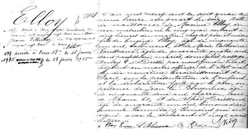1900 Acte de naissance (Paris 19ème, France)